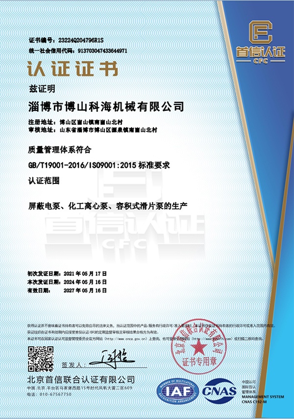 ISO9001質量認證體系認證·多年專注于耐酸泵化工泵生產(chǎn)制造